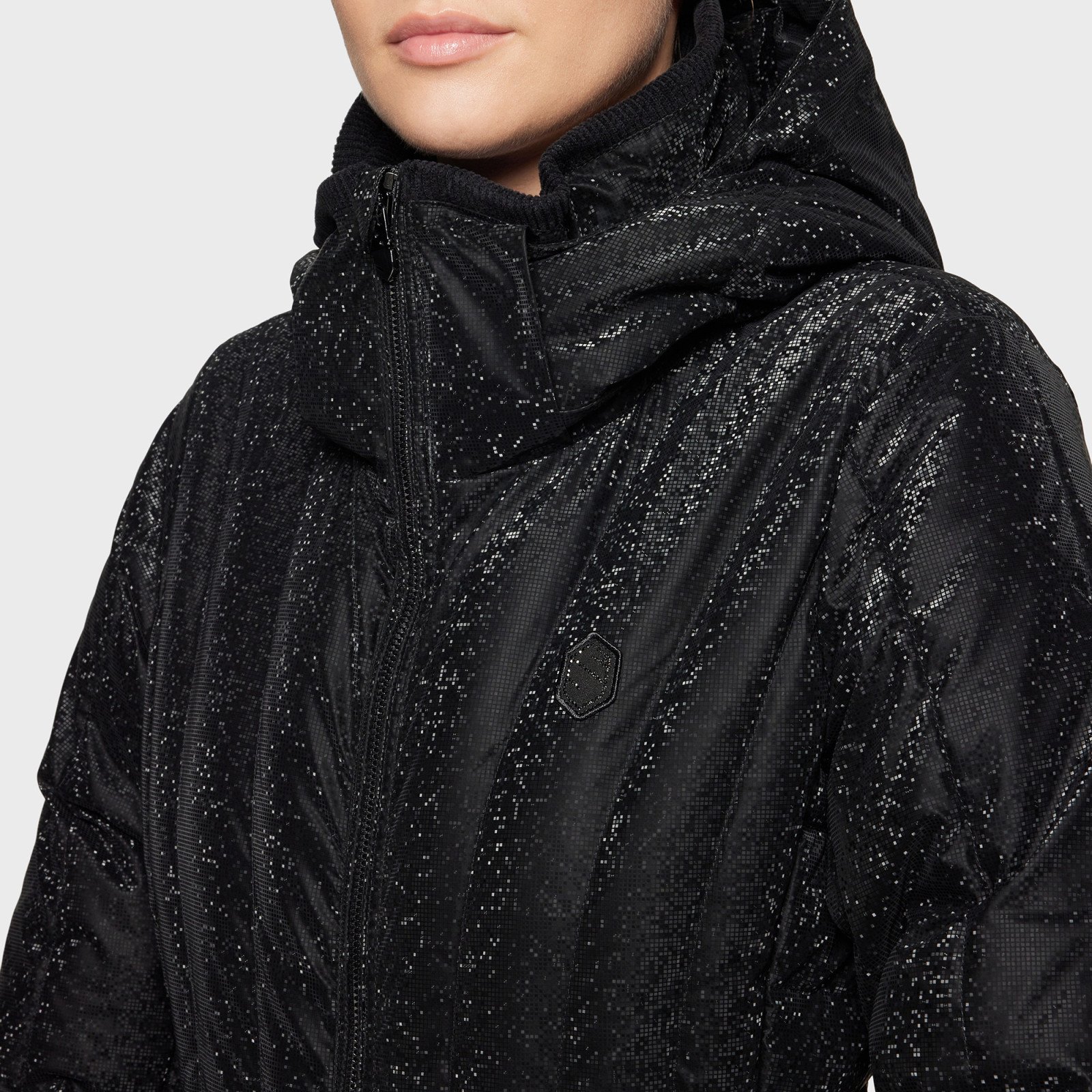 Жіночий пуховик Courchevel-Ice зі світловідбиваючим покриттям. Розроблений для вершників, які цінують авангардний, приталений стиль із блискавкою, для повсякденного життя або верхової їзди.